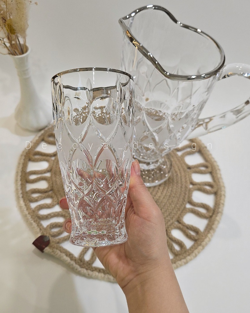 ابعاد : قطر دهنه پارچ 12cm – ارتفاع پارچ 24cm قطر دهنه لیوان 7.5cm – ارتفاع لیوان 14cm
